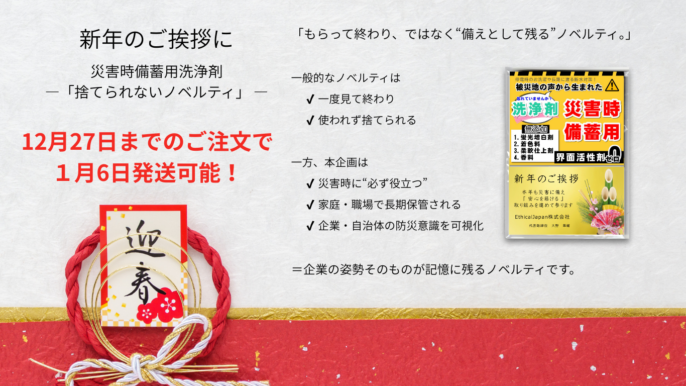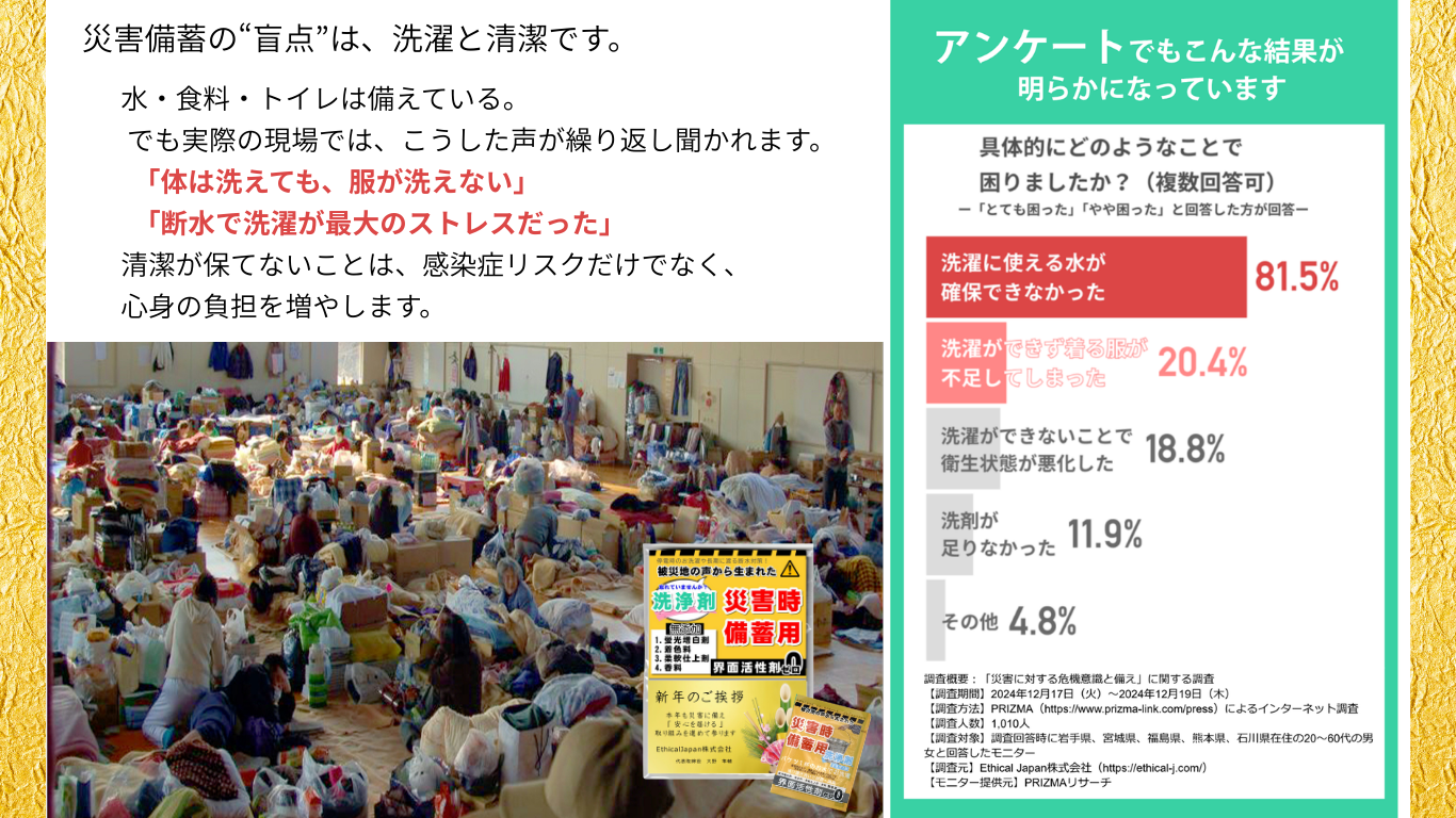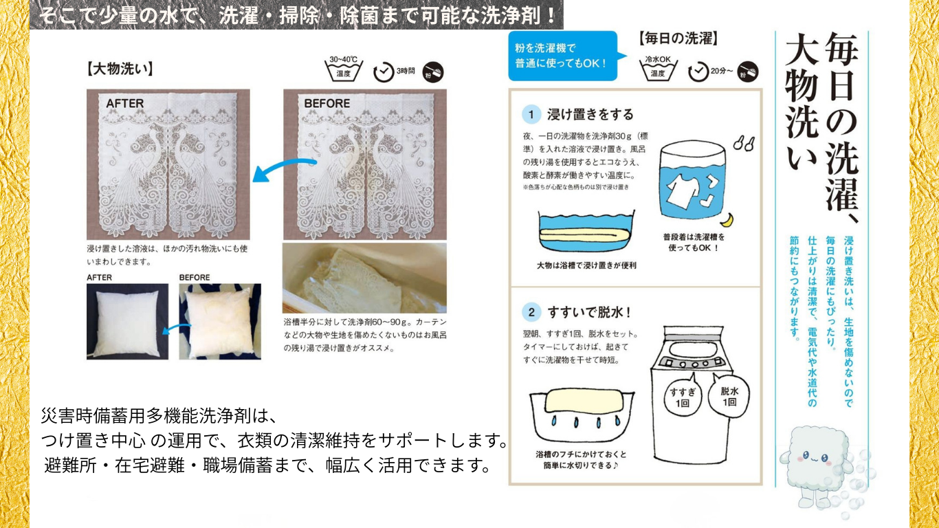 ある程度の年数が経過した場合、災害時以外でのお洗濯やお掃除にご利用いただき新たにご購入をご検討ください。
